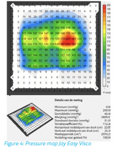 In addition, he indicates being uncomfortable and not being able to sit in his chair all day and feeling fatigued. The crooked position is confirmed when we conduct a pressure mapping measurement. As can be seen in figure 4 there’s a clear difference in pressure between the two sides. More pressure on his left leg could possibly also be the cause of the discomfort that he describes.