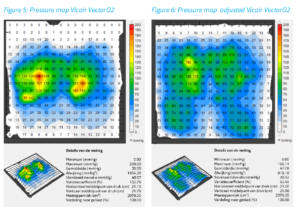 This is in order to make a proper judgement of where adjustments needed to be made. The assessment showed that, as expected, some adjustments needed to be made. The images show the differences in pressure between the Vicair Vector O2 in its standard configuration and the adjusted version.
