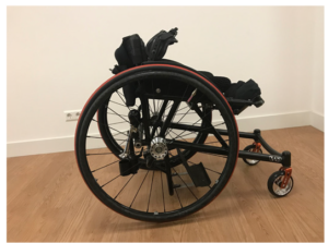 Implementing the SmartCell technology into the knee pads would hopefully redistribute the pressure created by the shear forces on the knee blocks, resulting in less redness and discomfort. Because the Vicair Vector O2 (6cm) was higher than the original 3D space fibre cushion the filling grade was adjusted to facilitate a comfortable position with regards to the distance to the wheels of the chair and manual movement.