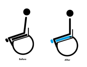 This results in redness of the skin in the knee/lower leg area. He is bothered mostly by the lack of stability when he is actively moving around in his wheelchair. He often chooses to keep moving in the uncomfortable position and reposition when he reaches his ‘destination’.