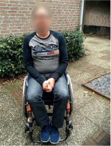 In his current seating solution Mr. R. suffers from pain in his buttocks, due to atrophy. He experiences the pain mostly under his sitting bones (IT’s). He experiences neuropathy pain when areas are pressured. A very basic example of this is when drying his legs with a towel after a shower, 30 minutes after the activity he still suffers from pain.