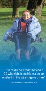 Unlike many wheelchair cushions that can only be cleaned with a damp cloth, Vicair O2 cushions don’t need any setup or adjustments before and after washing, the cushion can be put in the washing machine entirely, making a convenient feature. Agidens conducted a study to evaluate the impact of washing on the bacterial load of Vicair O2 cushions 2. The study involved washing the cushions in a common household washing machine at 60°C using a standard detergent (Areal), which resulted in a remarkable 99.99% reduction in bacterial load across all areas of the cushion.