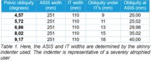Pelvic obliquity is an important cause of various problems such as scoliosis, unstable sitting, pain, and pressure injuries (For extra background information see: Literature review – pelvic obliquity in the wheelchair using population). The most common way to quantify pelvic obliquity is by determining the height difference between the left and right Anterior Superior Iliac Spine (ASIS).1