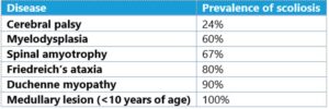 Scoliosis is a common problem in lots of diseases, which also increases the incidence of pelvic obliquity. For neuromuscular scoliosis Vialle et al investigated the prevalence for specific diseases: