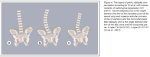 - Type 2b: the pelvic obliquity is severe, the sacroiliac joint is decompensated (reverse compensation, causing heavy obliquity of the sacrum), and the sacrum becomes part of the compensatory curve of the lumbosacral curve. It manifests as a sharp short curve in the lumbosacral area (figure 4 c). (Yu et al., 2021).