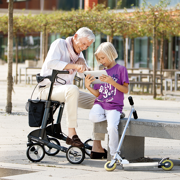 The ergonomic grip with knob (TOPRO Ergo Grip) provides a flexible grip, correct walking posture, and makes for comfortable armrests while seated. The knob makes it easier and safer to get up from a seated position.