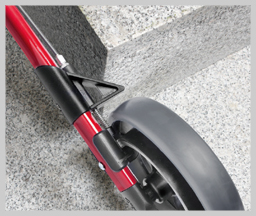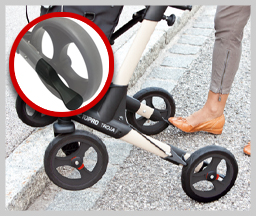The tilt assistance function gives the foot a wide area to step on and tilt the walker up to navigate kerbs while keeping both hands on the rollator for safety.