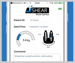 iShear is world’s first tool to measure total shear force in the seat of a wheelchair. It is placed under the cushion and communicates the results to a free to download app through a bluetooth connection.