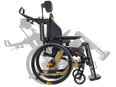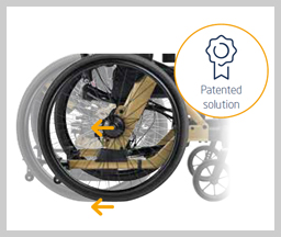The patented frame design ensures a very stable wheelchair and a safe experience for the user. The wheel footprint automatically increases by 90 mm when the wheelchair is tilted.