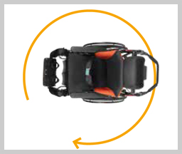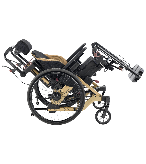 The user’s knee joint and the leg support hinge point are the same – this minimizes the risk of sliding by use of back recline and elevation of the leg supports.