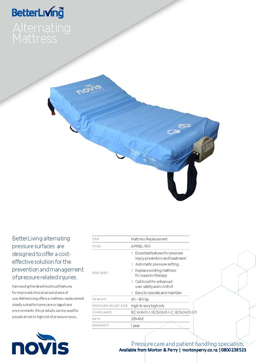 A alternating pressure air mattress designed for basic ease of use and minimal maintenance. Easy to set up, simple to operate and straightforward to clean and maintain.