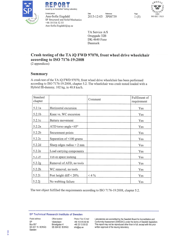 • Safety crash test approved for transport, very important when travelling to school in the chair.