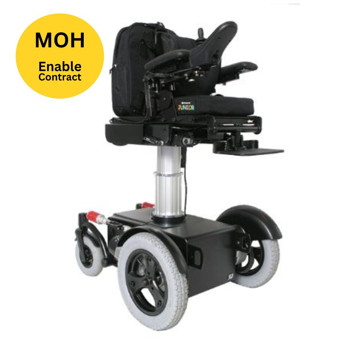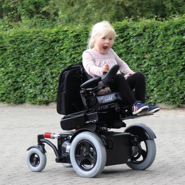 • The wheelchair has a power HiLo and tilt function (included as standard). The child can reach higher and sit at any school desk or dining table.