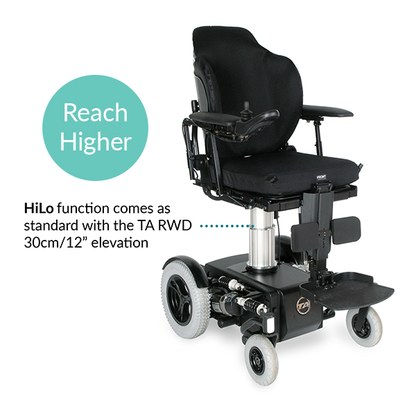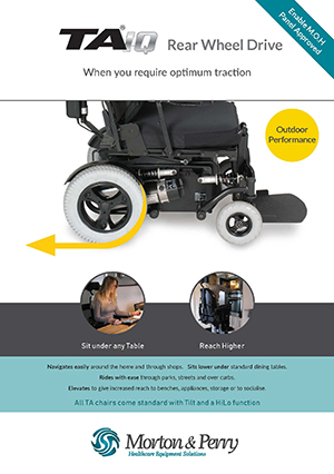 The TA iQ Rear Wheel Drive electric wheelchair is ideal for someone who spends most of their day in their chair. For use indoors, but also with more speed and range outdoors as required.