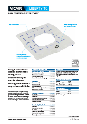 This Vicair Liberty TC toilet seat cushion changes the hard toilet seat into a comfortable seating surface. It is easy to install by simply strapping the lightweight toilet seat cushion onto the toilet seat. The watertight cover makes it easy to clean and disinfect.